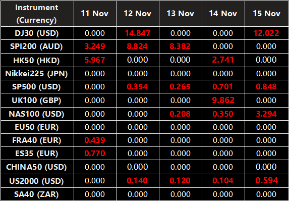 Please be advised that the dividends of the following index CFDs will be adjusted by upcoming ex-dividend dates. The comment for trading index CFDs will be in the following format “Div&<Product Name>&<Net Volume>” which show in the balance after the close of the day before the dividend payment date.