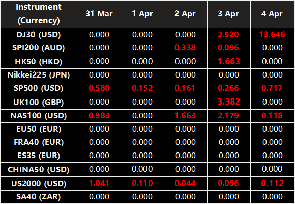 Please be advised that the dividends of the following index CFDs will be adjusted by upcoming ex-dividend dates. The comment for trading index CFDs will be in the following format “Div&<Product Name>&<Net Volume>” which show in the balance after the close of the day before the dividend payment date.